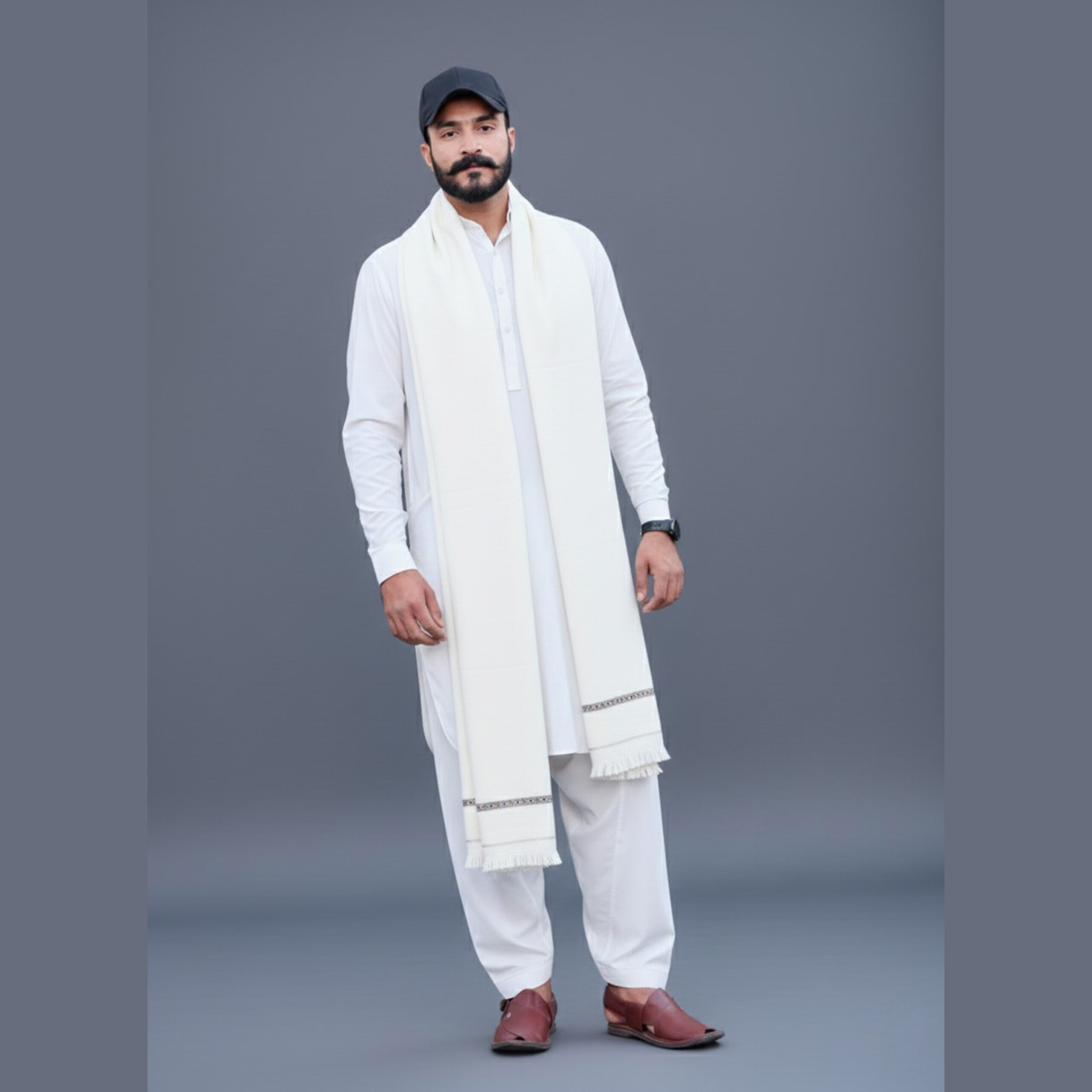 Off-White Pashmina Shawl for Men – Premium Winter Elegance by Wirsa.pk